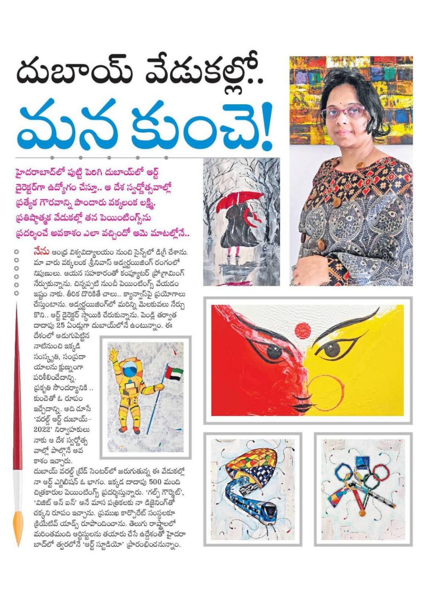With great enthusiasm and dedication, she has been contributing her talent and expertise to the art world. She has displayed her artwork in various exhibitions in Dubai, receiving immense appreciation. As part of this event, her creative ideas and efforts have inspired many Telugu artists in Dubai.